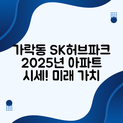 서울시 송파구 가락동 SK허브파크(주상복합) 아파트의 시세는 주변 인프라의 변화에 큰 영향을 받습니다. 2025년 10월 시세를 예측하기 위해, 지역 특징 및 개발 계획을 살펴보세요.