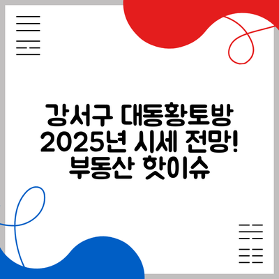 2025년의 시세는 서울시 강서구의 부동산 시장 전반에 대한 통찰을 제공하며, 특히 대동황토방2차 아파트와 같은 특정 단지를 위한 고유한 시장 동향을 반영합니다. 이러한 정보는 투자자와 주택구입 희망자에게 강력한 도움이 됩니다.