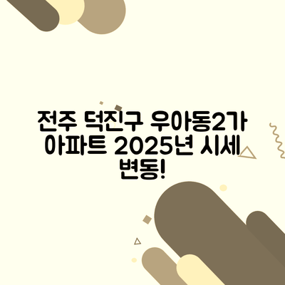 2025년 10월을 바라보며 전라북도 전주시 덕진구 우아동2가 선변오지오 아파트의 시세는 여러 요인에 의해 영향을 받을 것으로 예상됩니다. 이 글에서는 각기 다른 시각에서 시장 트렌드와 예측을 분석해 보겠습니다.