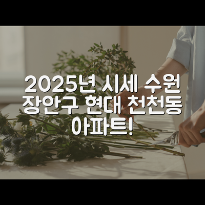 여러분, 경기도 수원시 장안구 천천동 현대 아파트의 시세가 어떤지 궁금하시죠? 2025년 10월의 시세가 어떻게 변할지 미리 알아보는 것은 절대 놓쳐서는 안 될 기회입니다!